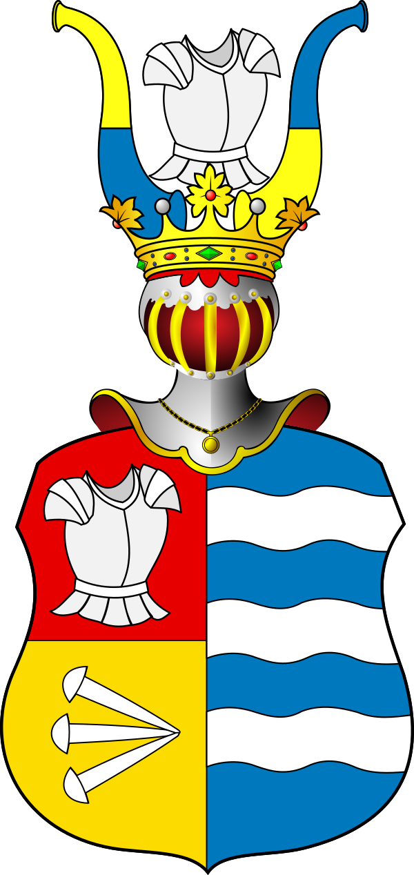 В щите наполовину разделённом, в правой части пополам пересечённой, в верхнем красном поле панцирь, несколько влево обороченный, а в нижнем, золотом, три гвоздя шляпками вправо обращённые, концами же соединённые вместе; в левой части три серебряные реки в голубом поле.