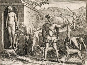 25 сентября 1493 года Колумб отплывает в Америку на 3 караках, 17 каравеллах с 1 500 людьми на борту. Именно с этой экспедицией в Новый Свет была завезена большая партия мастифов и грейхаундов, обученных для нападения на людей. Также применялись массовые повешения, организовывались карательные походы[6].