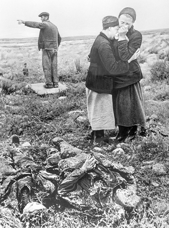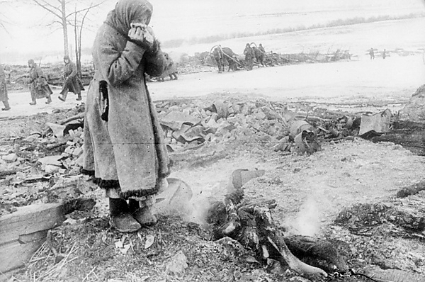 Самые масштабные эпизоды злодеяний зафиксированы в актах Чрезвычайной государственной комиссии. В деревне Жестяная Горка карателями было убито более 2600 человек. В деревне Красуха (Псковская область) немцы сожгли всех жителей в гумнах. В деревне Пикалиха заживо сожгли 180 человек, а в районе псковской «салотопки» были обнаружены останки не менее 2500 сожжённых граждан. К моменту освобождения Новгород и Псков были практически обезлюдевшими[35][36].