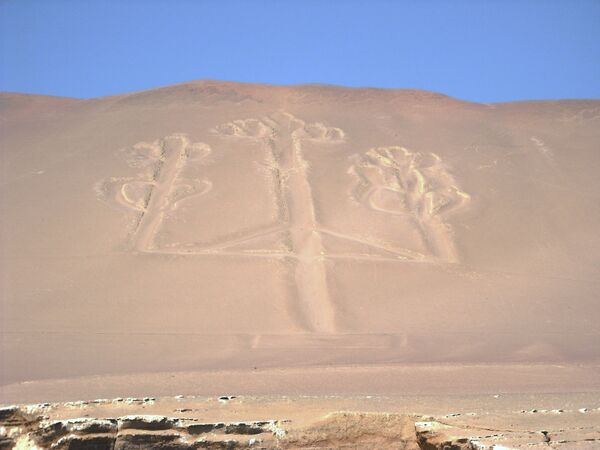 Возле города Писко (Перу) находится так называемый Андский канделябр, созданный по аналогичной технологии.