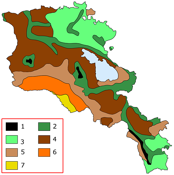 Почвенный покров Армении отличается разнообразием, в то же время большинство почв неплодородны и сложны для хозяйственного освоения. По характеру почв территорию Армении можно разделить на следующие пояса: