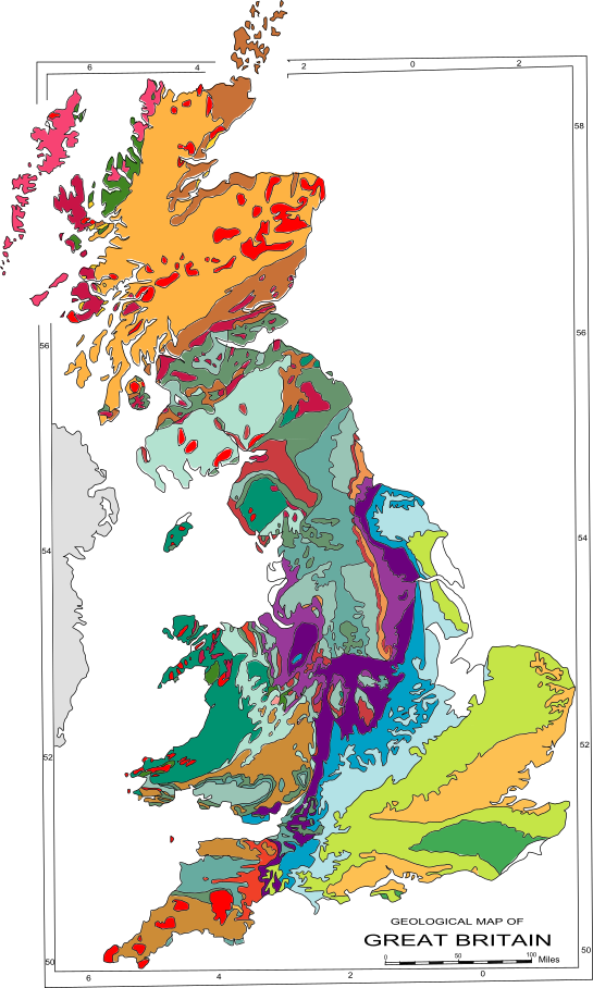 Геологическое строение Великобритании очень разнообразно и давно изучается людьми. С Великобританией связаны некоторые термины геологии (например, ордовикский период назван в честь древнего кельтского племени ордовиков, жившего в центральном и северном Уэльсе; девонский период назван в честь графства Девон на юго-западе Англии). Наиболее старые горные породы Великобритании — гнейсы, сформировавшиеся 2,7 млрд лет назад в архейскую эру — были обнаружены на северо-западе Шотландии на Гебридских островах. К югу от гнейсов расположена область, представляющая собой сложную смесь осадочных пород (приблизительный возраст — 1 млрд лет), формирующих северо-западную часть Хайленда и Грампианские горы в Шотландии.
