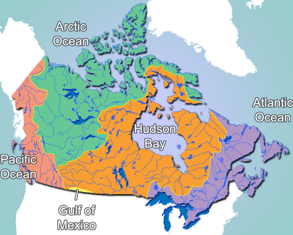 Главными бассейнами стока Канады являются следующие: бассейны Атлантического, Тихого, Северного Ледовитого океанов, бассейны Гудзонова и Мексиканского заливов.