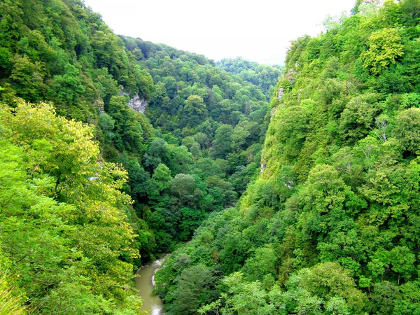 В лесах доминирует неморальный (широколиственный) комплекс растений: дубы, бук, каштан, ясень, граб, клёны, ольха. В подлеске и местами в нижнем ярусе древостоя встречается вечнозелёная субтропическая флора: падуб, самшит, земляничное дерево, рододендрон понтийский, лавровишня и т. д. К субтропическому комплексу относятся также фикус (инжир), гранат, фисташка и др. Деревья во влажных местах увиты лианами: плющом, виноградом, смилаксом, обвойником, ломоносом.