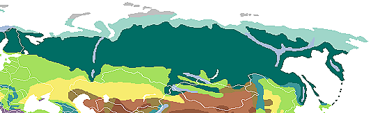 В России встречается на юге Камчатского края. Является приокеаническим аналогом лесотундры, от которой отличается более мягким и влажным климатом. Состоит из лугово-лесных ландшафтов, переходных от субарктических к бореальным ландшафтам. В бассейне реки Камчатки существует анклав северотаёжных ландшафтов, который включён в лесолуговую природную зону.[44]