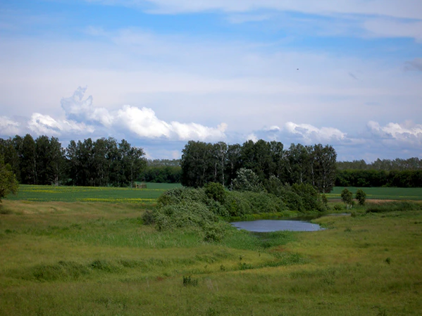Зона лесостепи является, как и следует из названия, переходной между лесной зоной и степью; тянется почти непрерывной полосой от границ Центральной Украины через Восточно-Европейскую равнину, юг Урала и Западную Сибирь до Алтая. Средняя температура июля до 21 °C, января до −8 °C в европейской части и до −18 °C в Западной Сибири. Почвы — серые лесные и чернозёмные (последние в северной части зоны в основном оподзоленный и выщелоченные); в Западной Сибири также распространены слабо выщелоченные лугово-чернозёмные почвы. Леса с преобладанием дуба и липы (а также клёна и вяза в Заволжье) в Европейской части страны и с преобладанием берёзы и осины в Азиатской части (в Западной Сибири называемые колками) чередуются со степными участками, всё более расширяющимися к югу, где лесостепь постепенно переходит в степь.[18]:84-109