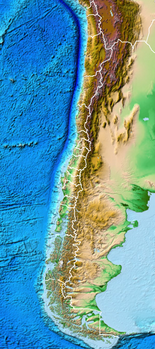 Зона субдукции образует Перуанско-Чилийский жёлоб, тянущийся практически вдоль всего побережья Чили. Острова в Тихом океане, принадлежащие Чили, являются горячими точками.