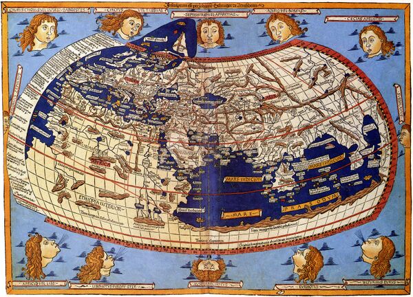 В XIII веке византийский монах Максим Плануд после долгих розысков обнаружил экземпляр птолемеевской «Географии», но без карт[4]. После падения Константинополя в 1453 году бежавшие от турок греки привезли с собою и этот труд. География была переведена на латынь и в 1466 монах-бенедиктинец немецкий космограф Николай Германус восстановил утраченные карты Птолемея, выполнив изображение в новой — трапециевидной — проекции[4]. В 1477 году карты Германуса были гравированы и появились в болонском издании птолемеевской «Географии», которое стало первым печатным трудом Птолемея[4]. Благодаря развитию печатного дела «География» Клавдия Птолемея и карты, составленные по его описаниям стали основным источником географических знаний в Европе и оказали колоссальное влияние на развитие цивилизации. Достоверно известно, что Христофор Колумб имел на своем штурманском столе географические карты Птолемея[4].