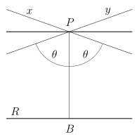 Через точку P, не лежащую на данной прямой R (см. рисунок), проходит бесконечно много прямых, не пересекающих R и находящихся с ней в одной плоскости; среди них есть две крайние x, y, которые и называются асимптотически параллельными (иногда просто параллельными) прямой R, а остальные — ультрапараллельными.