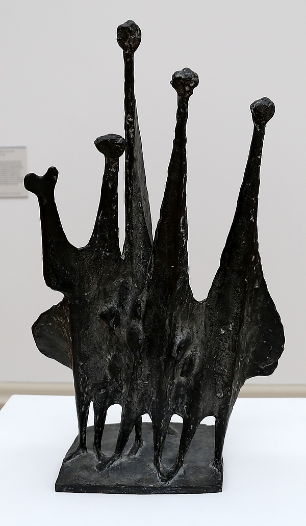В отличие от гладко вырезанных работ Хепуорта и Мура, они были угловатыми, зазубренными, с шероховатой текстурой или же остроконечными, также они были более линейными и открытыми. Британский куратор выставок Филипп Хенди сравнил скульптуры Батлера с трехмерными рисунками.[3] Многие из скульптур в павильоне изображали фигуры людей или животных, при этом в некоторых работах просматривалось влияние европейских скульпторов Жермен Ришье и Альберто Джакометти, работы которых были до этого показаны в англо-французском Центре искусств в Лондоне в 1947 году.[2] В работах Британских скульпторов отмечалось беспокойство и чувство вины послевоенного периода, в них все напоминало о войне, Холокосте и Хиросиме, также в них присутствовал страх перед распространением ядерного оружия и последствиями зарождающейся в мире Холодной войны.[3]