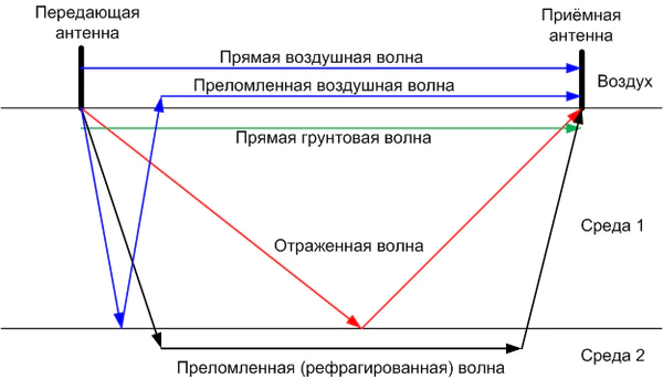 - Отражение от границ раздела сред с разной относительной диэлектрической проницаемостью.
