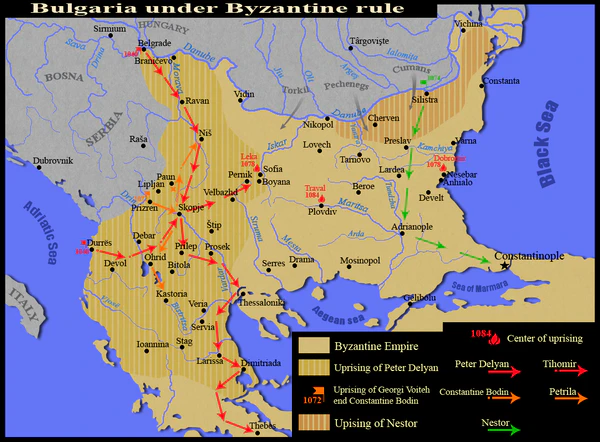 Увеличение налогового бремени, ослабление Византии в результате нашествия печенегов, сокрушительное поражение под Манцикертом вызвали рост недовольства византийской властью среди болгарского населения. Восстание, вспыхнувшее в 1072 году в Скопье, возглавил Георгий Войтех. Восставшие обратились к князю Зеты, Михаилу, с просьбой отправить к ним одного из своих сыновей, наследников болгарской царской династии, чтобы он возглавил болгарское государство. Михаил отправил своего седьмого сына — Константина Бодина, которого в Призрене боляре объявили царем Болгарии.