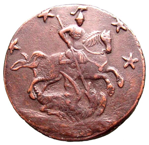 Изображение всадника присутствует на русских монетах с XIII века (впоследствии такие монеты стали копейками), однако их невозможно однозначно идентифицировать с Георгием. Тем не менее, на реверсе всех современных российских копеечных монет образца 1997 года, а также инвестиционных монетах «Георгий Победоносец», изготовляемых из золота и серебра, изображён всадник, рисунок которого практически идентичен образу на старинной новгородской иконе конца XIV века.