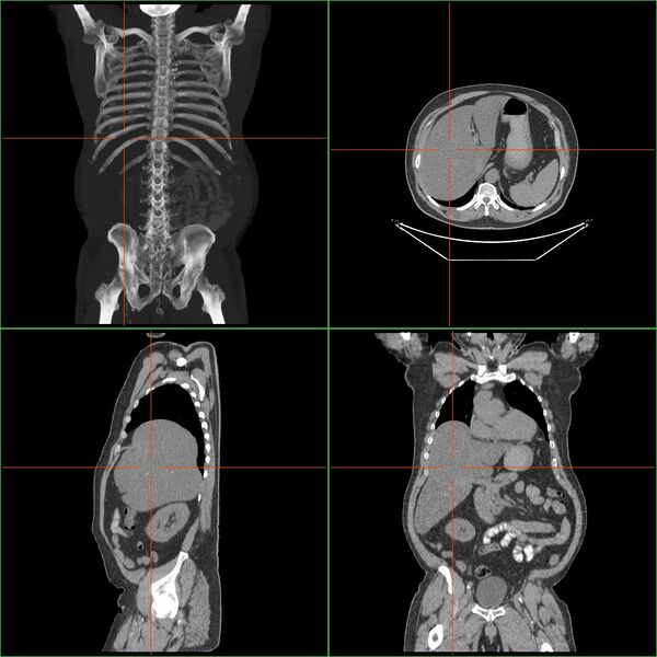 Если размер печени по l. medioclavicularis dextra превышает 12 см или пальпируется левая доля в эпигастральной области, говорят об увеличении печени. Важно исключить опущение печени (например, при хронической обструктивной болезни лёгких или вздутии правого лёгкого) или расположение в правом верхнем квадранте других тканей (увеличенный желчный пузырь, опухоль почки или кишки). Размеры печени лучше определить посредством КТ или Ультразвуковое исследование. Важно оценить контуры и рисунок ткани органа; Увеличение тех или иных участков ткани; «каменистая» консистенция предполагает наличие опухоли; боль при пальпации говорит о воспалении (гепатит) или быстром увеличении размеров органа (недостаточность правого сердца, болезнь Бадда — Киари (Budd-Chiari syndrome), жировая инфильтрация).