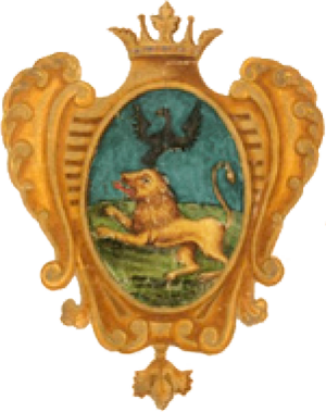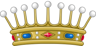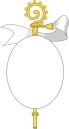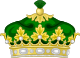 Дворянская корона — золотая с тремя видимыми листовидными зубцами и двумя жемчужинами между ними[13].
