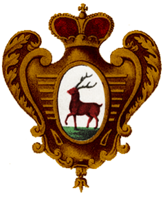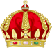 9. Потомки князей, происходящие от Рюрика и Гедимина, имеют право поместить в гербах своих корону древнерусской формы, но багряного цвета и украшенную в середине золотым древневизантийским двуглавым орлом. Корона светлейших князей состоит из венца с тремя дугами, украшенными драгоценными камнями и жемчугом; она подбита багряным бархатом и увенчана державою с крестом о широких концах. Корона сиятельных князей имеет вместо венца горностаевую опушку с тремя дугами, украшенными жемчугом, и увенчана державою и крестом. Корона князей-нехристиан украшается вместо креста золотою звездою о пяти лучах. Графская корона составляется из золотого венца с девятью остриями, увенчанными жемчужинами. Баронская корона схожа с графскою, только с семью жемчужинами. Дворянская корона состоит из венчика с тремя листьями, между которыми помещены две большие жемчужины. Венок, скрученный из лент по металлу и финифти главного щита, может заменить корону в нашлемнике. Инструкция Гербовому отделению Департамента Герольдии Правительтствующего Сената Российской Империи для составления родовых гербов. Из книги И.В. Борисова (Ильина) «Родовые гербы России» [12]