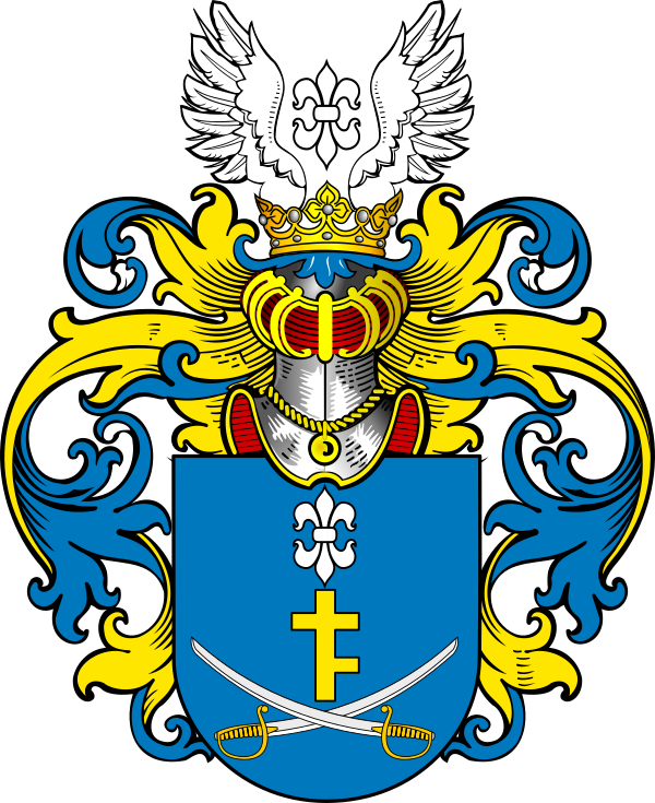 В польском гербе Трачоброн две серебряные лилии, связанные между собою так, что одна из этих лилий обращена цветком вверх, а другая — вниз.
