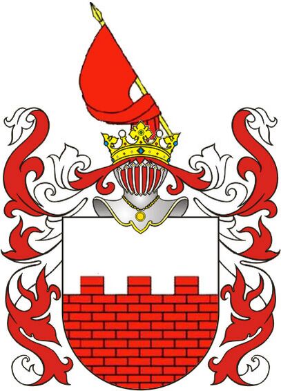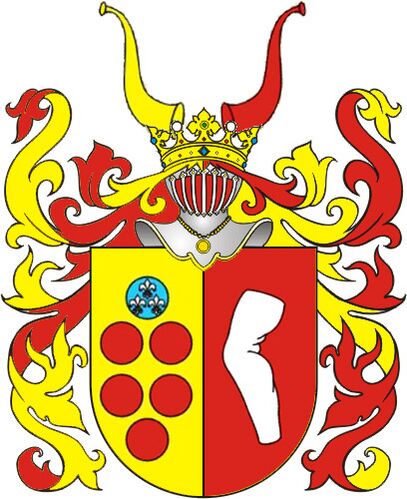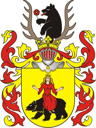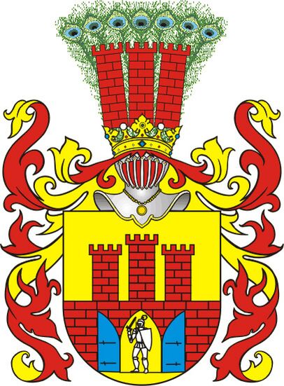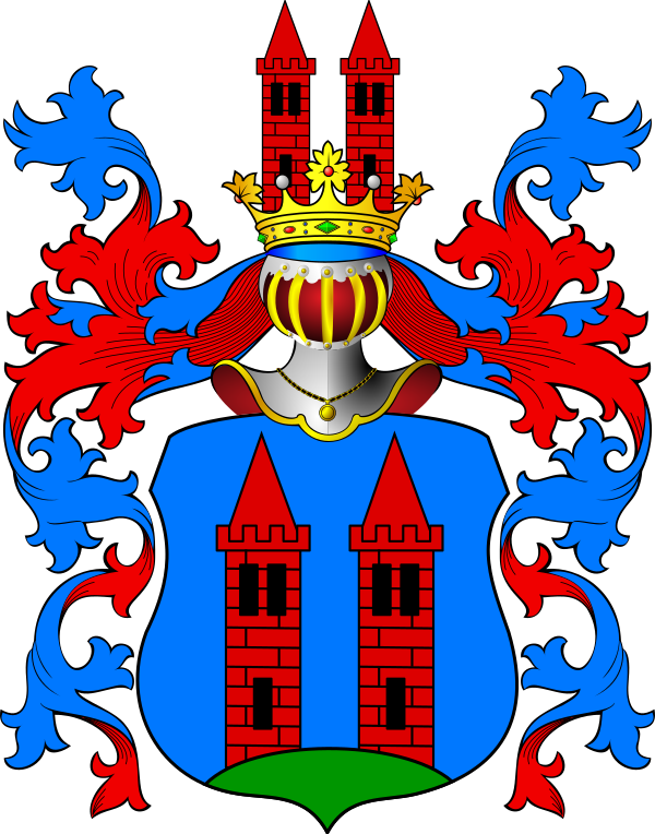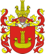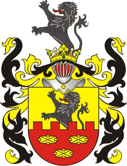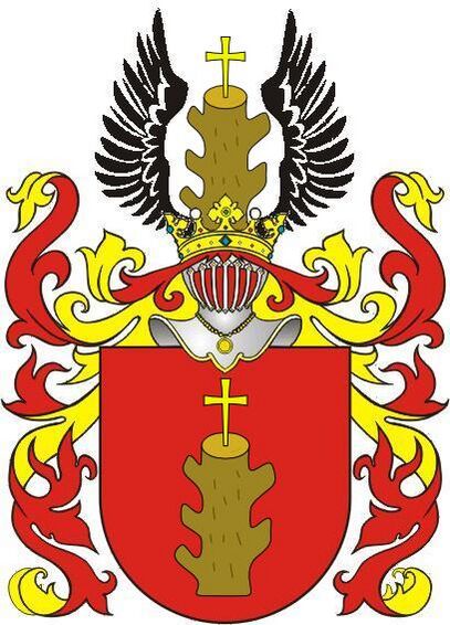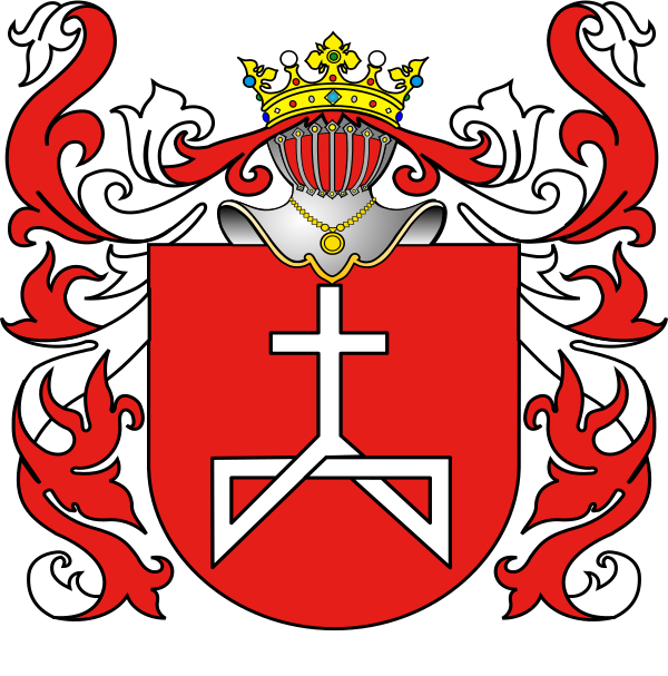 - Щит (польск. tarcza) — центральный элемент, на котором размещается гербовая эмблема