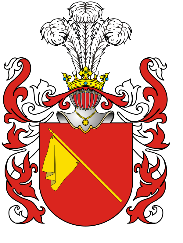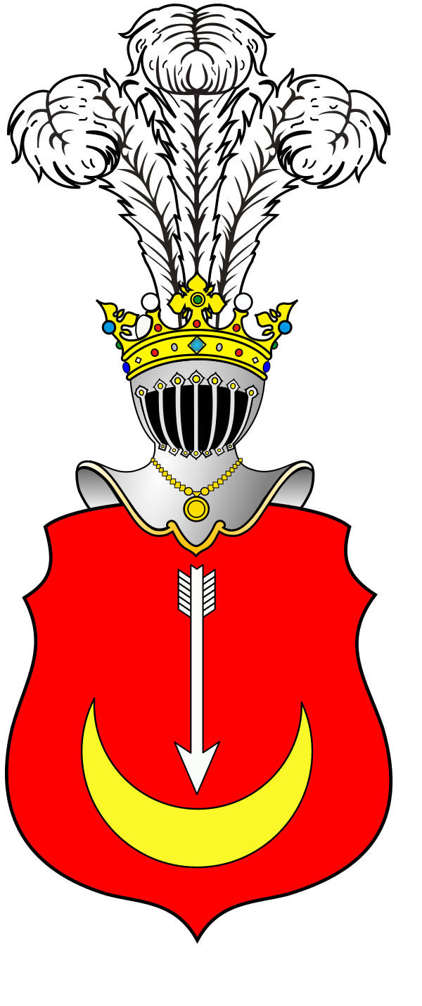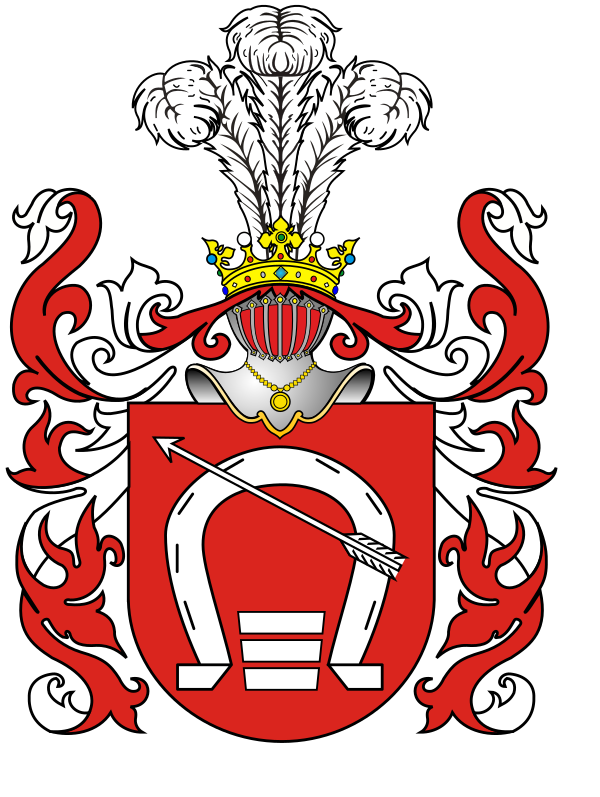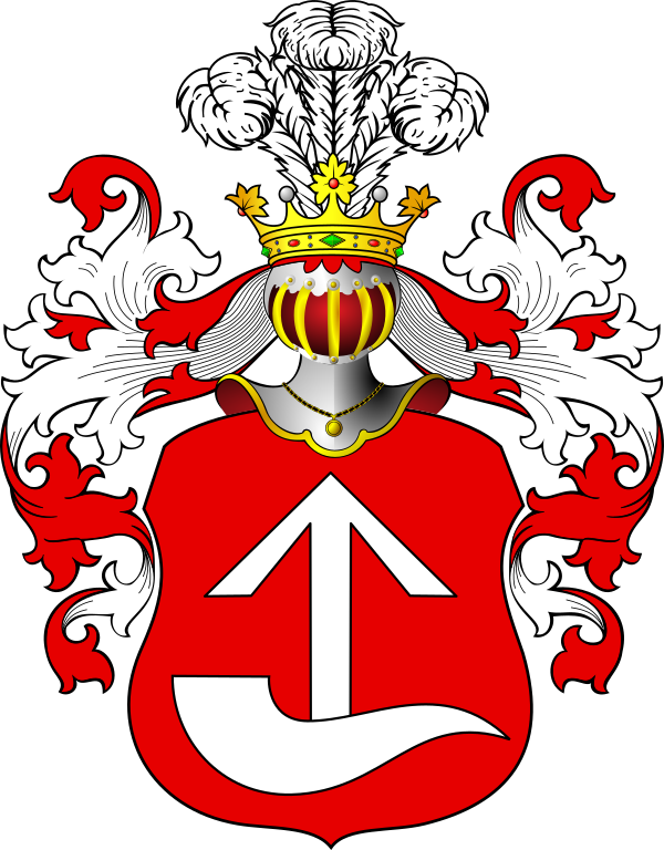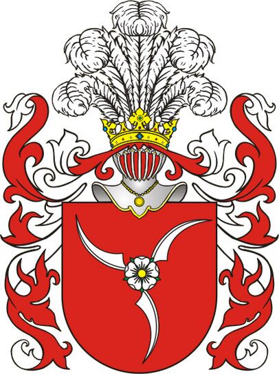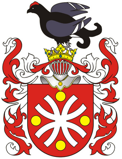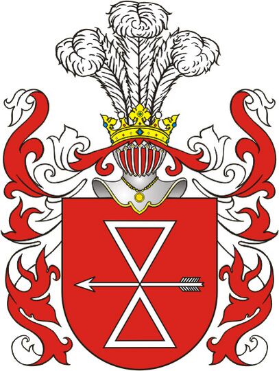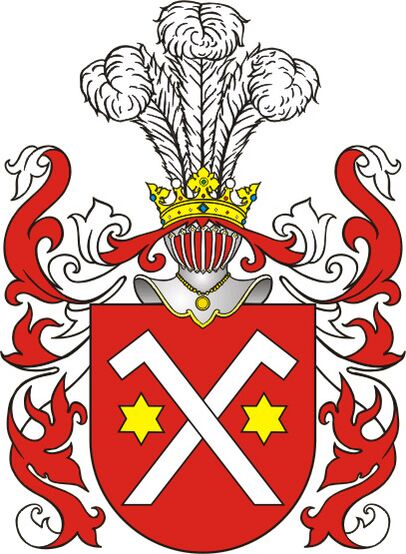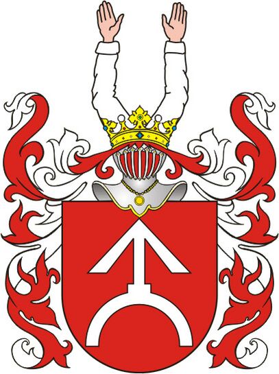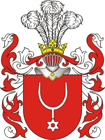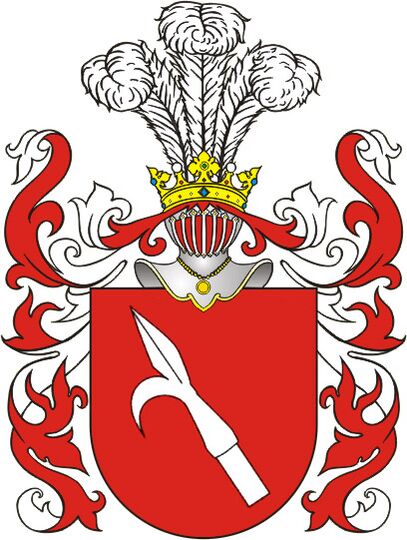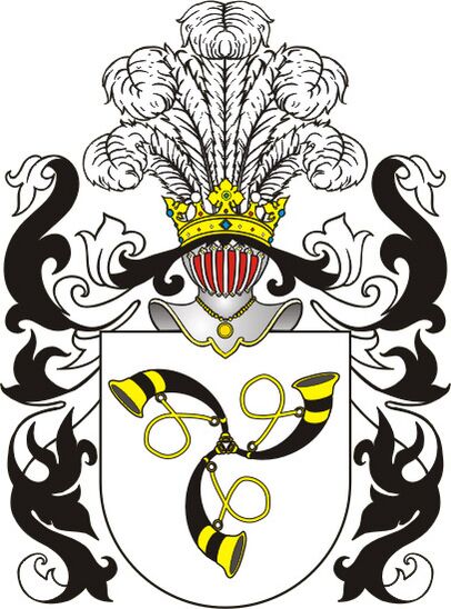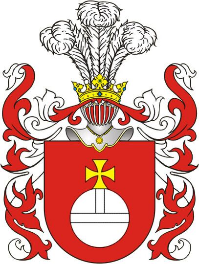 - Шлем (польск. hełm) — располагается над щитом. В отличие от западноевропейской геральдики, тип шлема обычно не указывал на ранг владельца