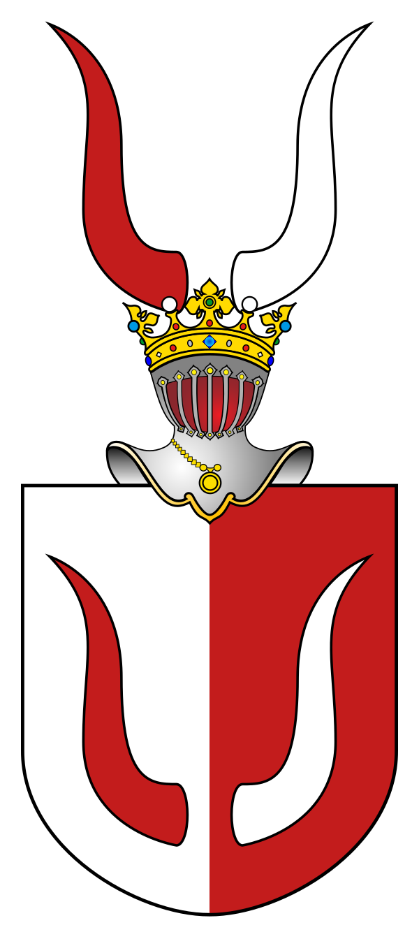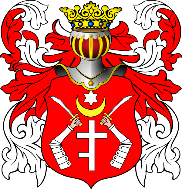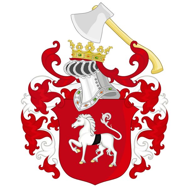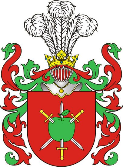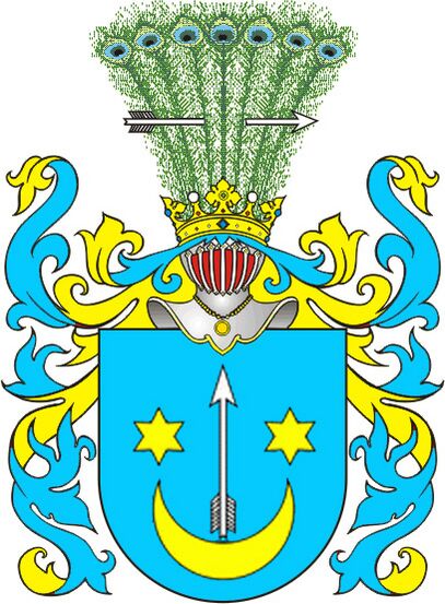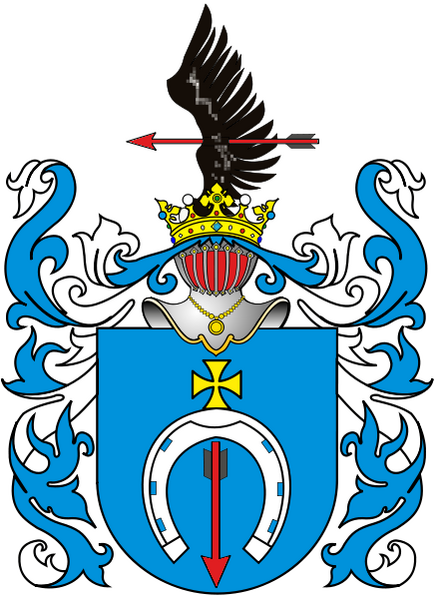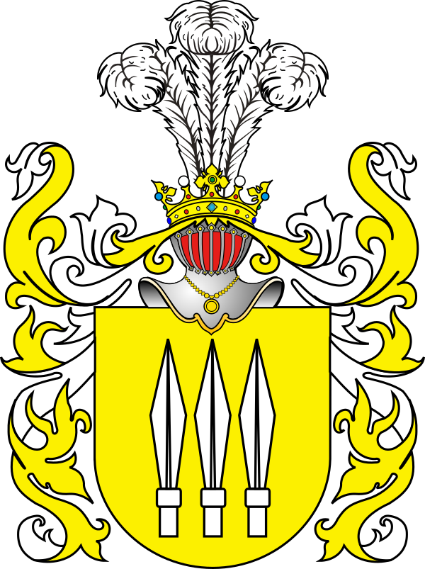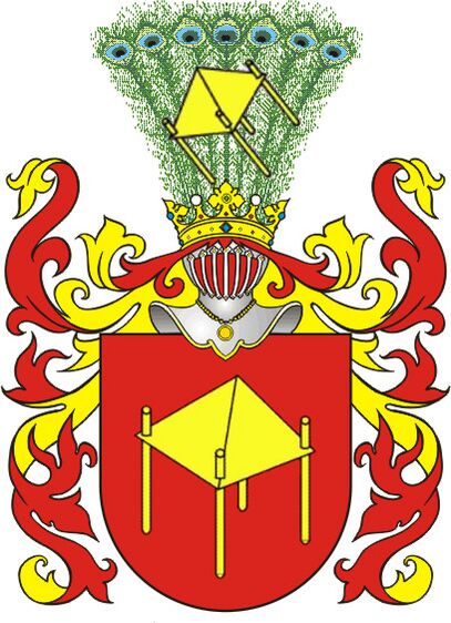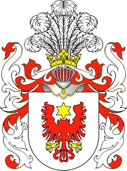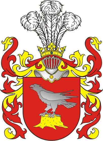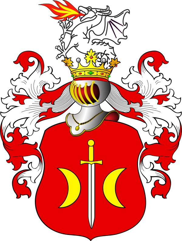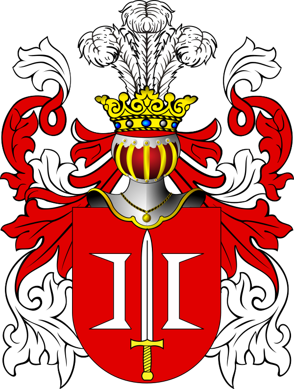 - Шлем (польск. hełm) — располагается над щитом. В отличие от западноевропейской геральдики, тип шлема обычно не указывал на ранг владельца