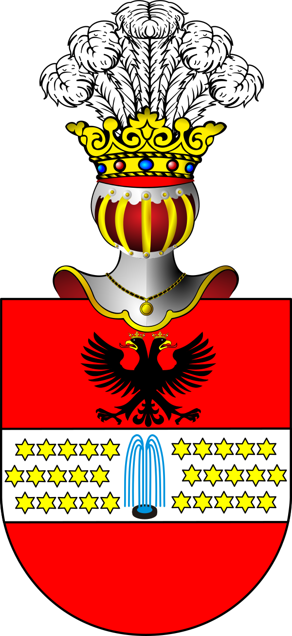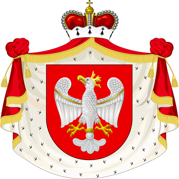 Пруссия. Геральдика этого региона (как Королевской, так и Герцогской Пруссии) испытывала сильное немецкое влияние. В отличие от простых польских гербов, прусские часто имели сложные многочастные щиты, богатые нашлемники и использовали щитодержателей. Примером адаптации служит герб Герцогства Пруссия, где тевтонский чёрный орёл был дополнен королевским вензелем Сигизмунда I.