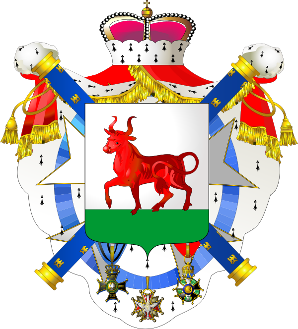 Герб Речи Посполитой, окончательно сформировавшийся после Люблинской унии 1569 года, представлял собой символ союза Королевства Польского и Великого княжества Литовского. Основу композиции составлял четверочастный щит: в первом и четвёртом полях располагался польский Белый Орёл, а во втором и третьем — литовская «Погоня»[10]. Геральдическая символика фигур имела глубокое значение: орёл олицетворял власть и чистоту, а всадник «Погони» — образ защитника Отечества, готового отразить нападение врага[11]. Ключевой особенностью герба, подчёркивавшей выборный характер монархии, стало наличие центрального (сердцевинного) щитка, предназначенного для личного герба правящего короля. Содержание этого щитка менялось со сменой правителей: например, при династии Ваза там размещался сноп (герб «Ваза»), а при Станиславе Августе Понятовском — телец (герб «Циолек»)[10].