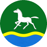 « В зелёном поле с волнистой лазоревой, окаймлённой золотом, оконечностью, серебряный бегущий жеребёнок».