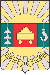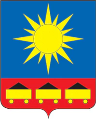 В лазоревом (синем, голубом) поле с червлёной (красной) оконечностью, обременённой тремя золотыми нагруженными чёрным углём повозками (вагонетками) — золотое солнце о шестнадцати лучах (без изображения лица).