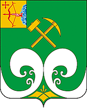 В зелёном поле золотые молот и кирка накрест, сопровождаемые внизу двумя возникающими навстречу друг другу и ударяющимися друг о друга серебряными волнами.