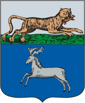В лазоревом (голубом, синем) поле бегущий серебряный олень.