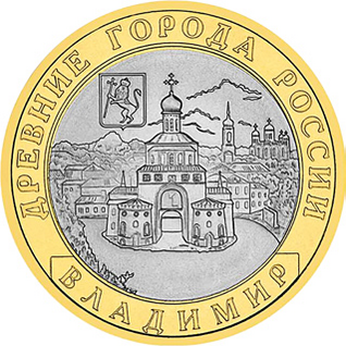 1 февраля 2008 года Банком России была выпущена памятная монета номиналом 10 рублей, из серии Древние города России, на реверсе которой изображён герб Владимира[18].