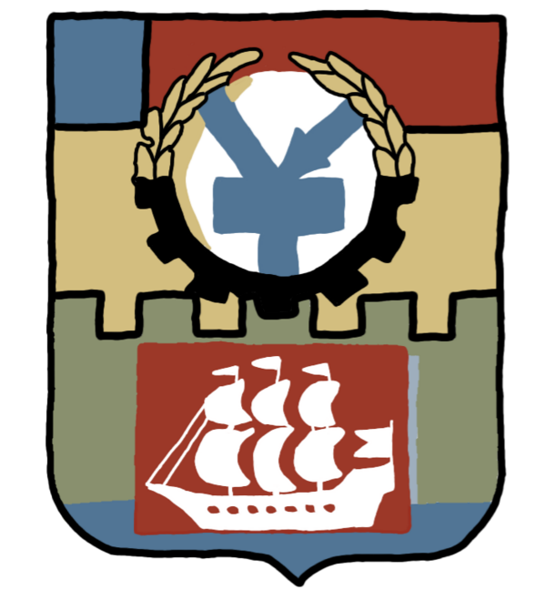 | Корона | золотая башенная корона о пяти видимых зубцах, дополненная золотым лавровым венком |