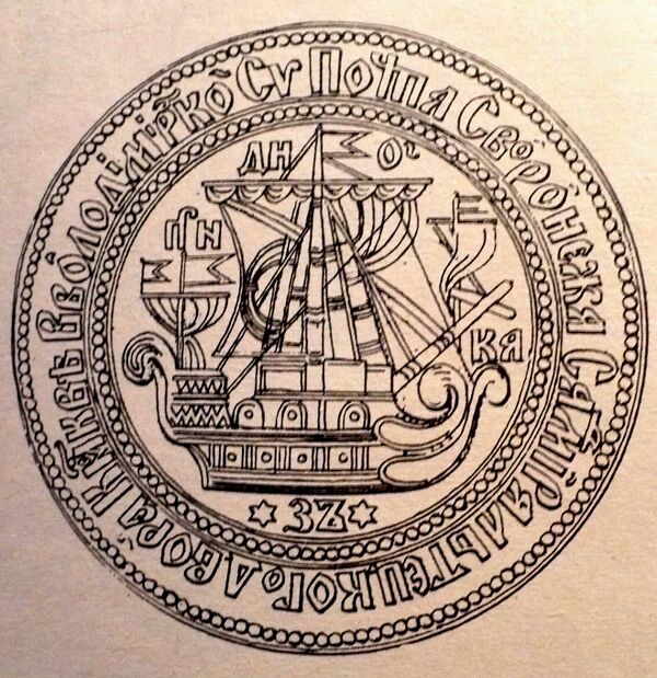В 1700 году город Воронеж перестал подчиняться воеводе, а был отдан под начало начальника Адмиралтейского приказа (Воронежского адмиралтейства). На печати Воронежского адмиралтейства 1698—1712 годов изображался парусный корабль[4].