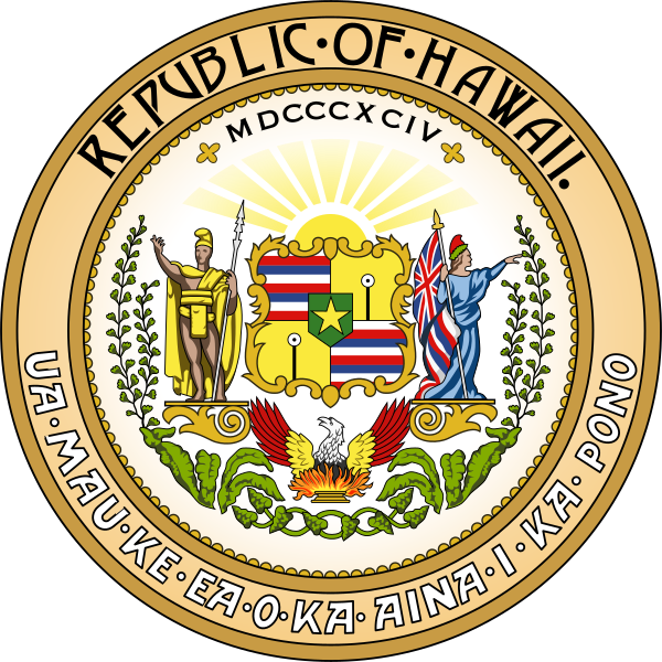 3 июля была провозглашена Гавайская республика, и герб изменился. Королевские вельможи, как и плащ были удалены, однако корона осталась на гербе в память о монархическом прошлом. Так же герб приобрёл форму печати.