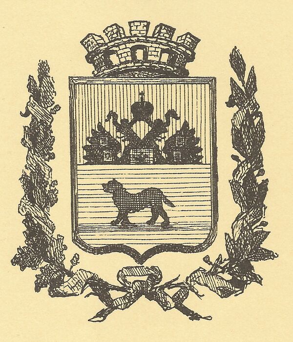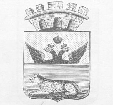 В верхней части щита, часть герба Могилевского: в золотом поле половина Российского герба. В нижней — лежащая спокойно рысь, в голубом поле; ибо таковых зверей в окрестностях сего города весьма много[3].