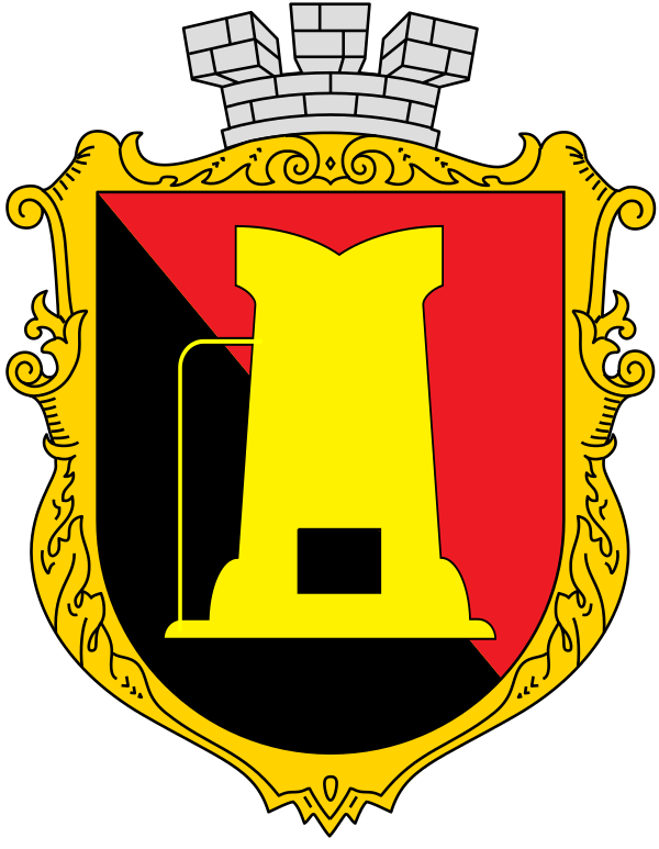 В 1967 году утверждён герб тогда официально так и не был, но на городских въездных стелах его разместили. Разместили именно герб, разработанный Андриенко. Гербы для стел сделали из стальных листов, на которые наварили из полос контур домны. Стоит заметить, что рисунок домны был очень упрощён. Домну покрасили жёлтой краской, а верхнее поле – коричневой. Ибо такие краски были у строителей. И такая раскраска в дальнейшем закрепилась за городом и при утверждении в 1990 году эту раскраску восприняли как якобы выигравшую конкурс в 1967 году, утверждая герб города[5].