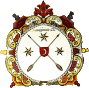 - ↑ В проекте большого герба 1800 года упоминается, что щиток имеет форму «азиатского оборонительного» щита, однако на большинстве изображений он, равно как и сам щит герба — французский.
