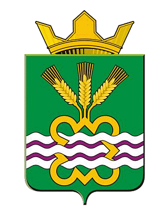 Хлебные колосья и зелёный цвет поля олицетворяют природные богатства и сельскохозяйственные угодья, обеспечивающие благосостояние его жителей в прошлом, настоящем и будущем. Серебряный пояс призван символизировать обилие водоёмов, а пурпур — наличие среди них озёр с солёной водой.