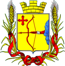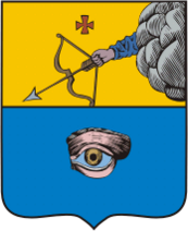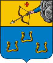 «В золотом поле выходящая косвенно вниз из лазоревого (голубого) облака правая рука (десница) натурального цвета в червлёном (красном) рукаве, держащая натянутый лук со стрелой того же цвета, во главе щита — уширенный крест, также червлёный».
