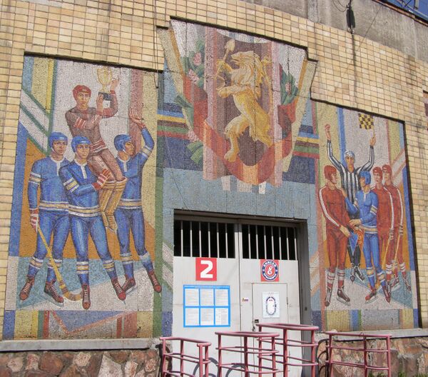 В 1987—89 годах смальтовая мозаика в виде стилизованной исторической эмблемы украсила фасад стадиона «Енисей».