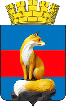В дважды пересеченном лазоревом, червленом и лазоревом поле на выходящей снизу черной скале (куске каменного угля) сидящая и обернувшаяся золотая лисица, с чёрными глазами, тыльными сторонами ушей, кончиками носа и лап, с серебряными грудкой, нижней частью мордочки, внутренними сторонами ушей и кончиком хвоста, уложенным перед собой ниже лап.