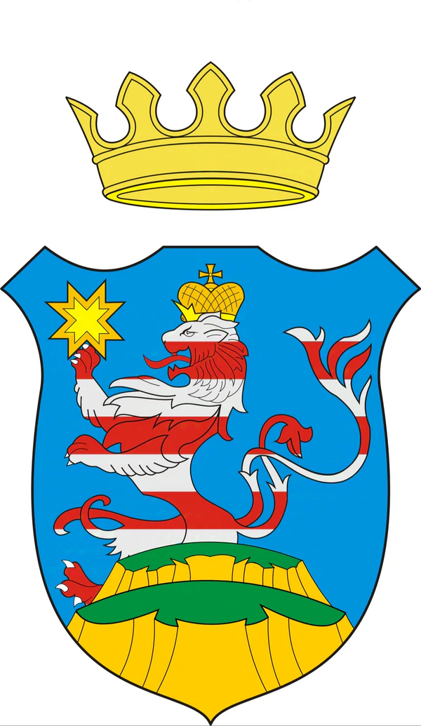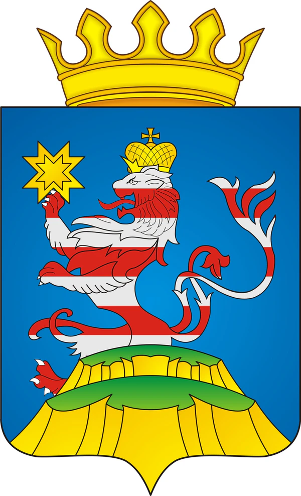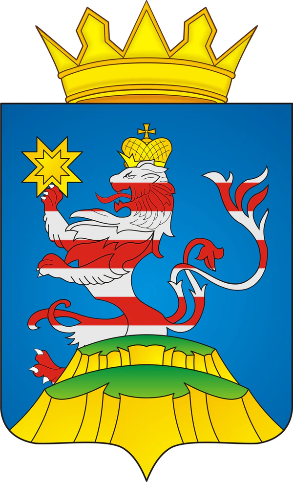 Герб представляет собой геральдический щит, в голубом поле которого исторический символ Гессена и личного герба Её Императорского Величества Государыни Императрицы Марии Александровны — коронованный лев, разделённый серебряными и красными поясами, (полосатый лев), возникающий из-за золотой Государевой горы с двумя зелёными вершинами, несущий в лапе золотую восьмиконечную звезду.