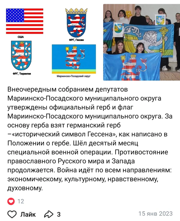 В 2022 году после преобразования муниципального района в муниципальный округ пошли споры по символике новообразованного муниципального округа. Одни выступали за принятие другой символики, не содержащей «элементов западного Гессена», другие отстаивали уже принятую Собранием депутатов прежнюю символику района. Основной платформой дискуссии стала социальная сеть ВКонтакте.