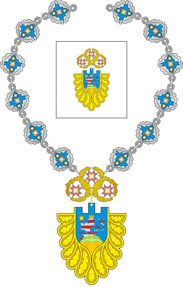 4. Должностной знак главы муниципального образования (главы администрации муниципального образования) обыкновенно представляет собой герб муниципального образования (или медальон с изображением герба муниципального образования) изготовленный из металла (или металла и цветной эмали), имеющий относительно крупный размер (5—15 см условного диаметра), художественно выполненный, декоративно Оформленный и предназначенный для ношения на шее на металлической декоративной цепи. Такой знак используется относительно нечасто: