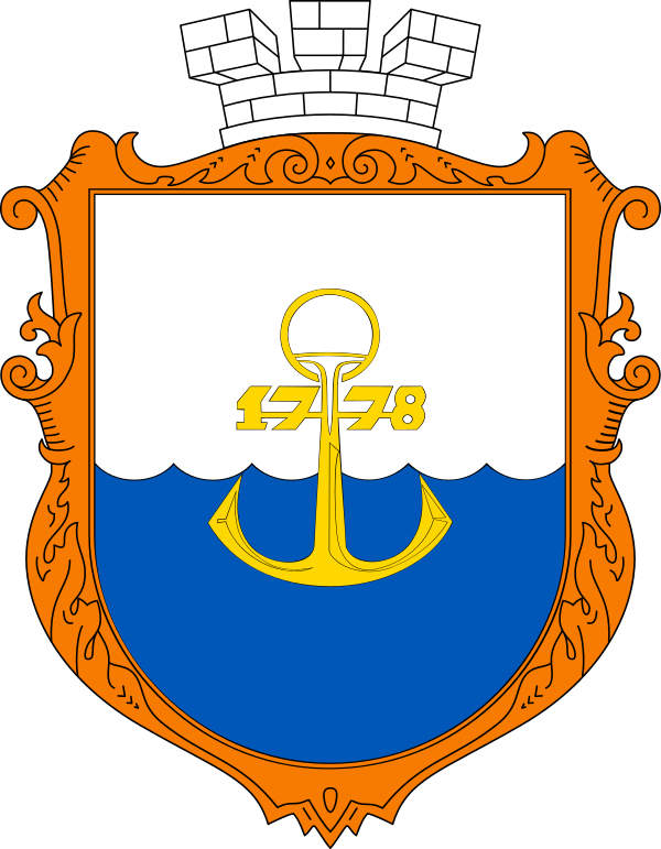 В центре герба изображён якорь — символ портового города. Причём сам якорь состоит из ковша (кольцо якоря), выливающего металл по контуру и цифр 1778 — года основания города. Автор герба — известный художник-медальер, заслуженный деятель искусств Украины Ефим Викторович Харабет.