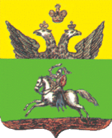 «В зеленом поле на золотой земле всадник в черных доспехах с серебряными перьями на шлеме, скачущий на чёрном коне, с поднятой в деснице серебряной с золотым эфесом саблей, на левом плече червлёный (красный) тарч, обременённый серебряным двойным (равноконечным) крестом. Убранство коня червлёное, украшенное серебром».
