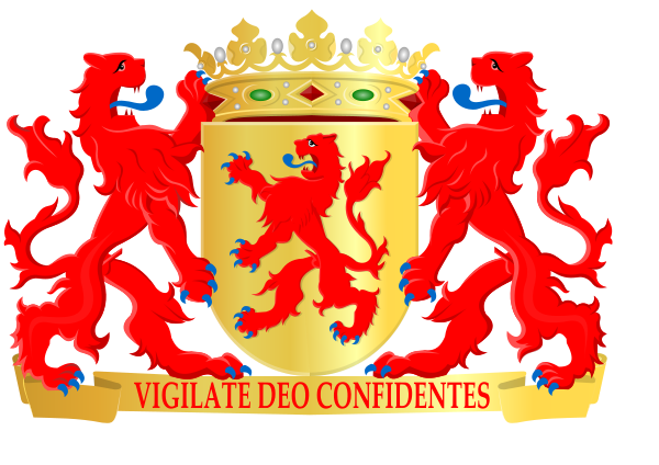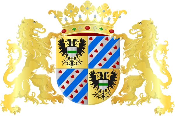 На лазурном поле золотые билеты и лев в золотой короне c червлёными когтями и языком, держащий в своей правой лапе серебряный меч с золотой рукоятью, а в левой — семь серебряных стрел, символизирующих семь провинций Утрехтской унии. Щит увенчан Нидерландской королевской короной и поддерживается двумя золотыми львами с червлёными когтями и языками. Они стоят на лазурной девизной ленте с текстом золотыми буквами Je Maintiendrai (средневековый французский язык, буквально «я выстою», «я сберегу»).