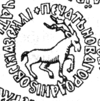Интересная разновидность нижегородского герба (с двуглавым орлом в верхней половине щита) на печати Дворянского Собрания Нижегородского наместничества.