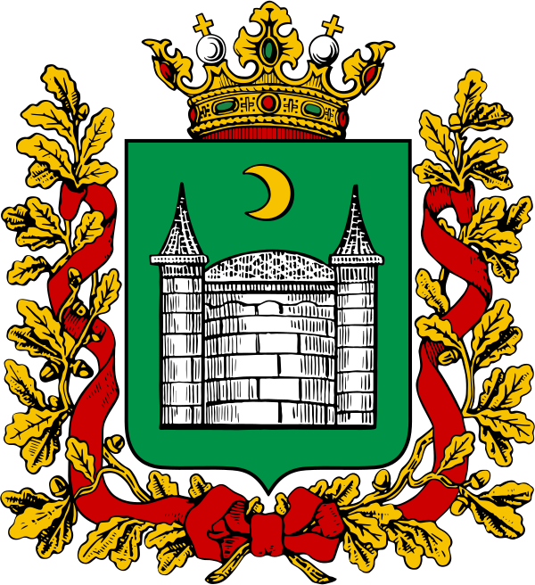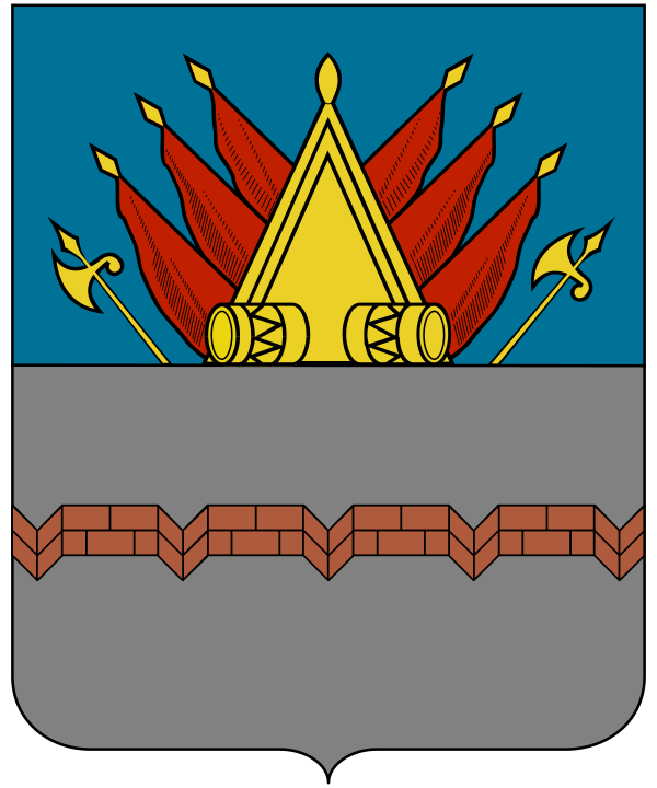 Центральная часть герба. В серебряном поле червлёная мурованная чёрным стена с малыми треугольными бастионами. Щит увенчан золотой башенной короной о пяти зубцах, окружённой по обручу золотым лавровым венком, и окружён лентой ордена Трудового Красного Знамени. Полный герб также содержит изображения щитодержателей: фузилёр пехотных полков времён императора Петра Великого и сибирский казак в одеянии и вооружении второй половины XVIII века. Подножие: зелёная земля, поросшая травой и ковылём. Девиз «Оный есть главная крепость» начертан червлёными литерами на серебряной ленте.