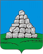 «Пирамидою сложенная куча изъ извѣстнаго камня, называемаго опока, означающій имя сего города, в голубомъ полѣ.» В верхней части щита — герб Пскова.